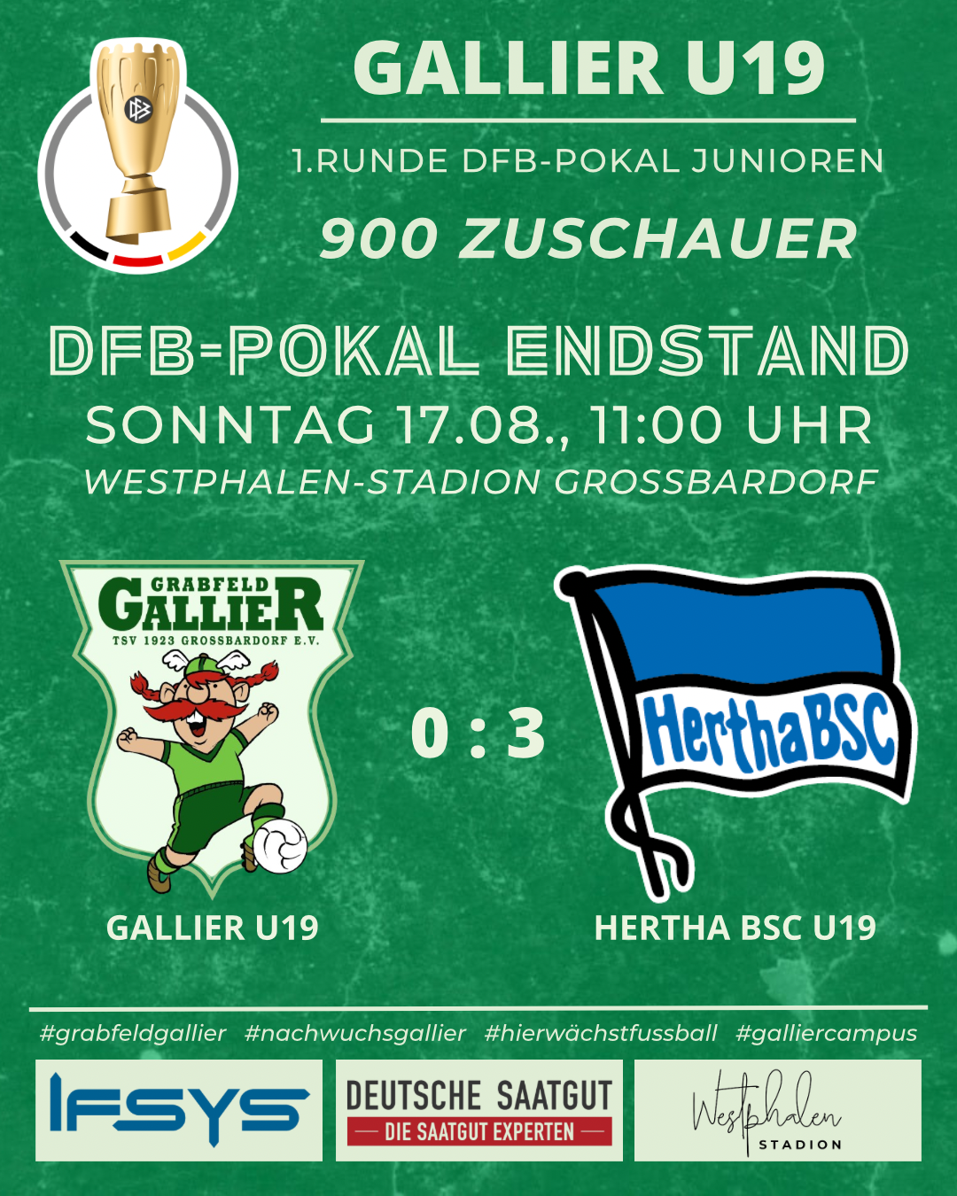 Es war das nächste Highlight für unsere jahrzehntelange Nachwuchsarbeit! Unsere U19 erkämpfte sich in der Saison 2024/2025 den Titel des Bayerischen U19 Pokalsiegers und qualifizierte sich damit für die Hauptrunde des DFB-Pokal Junioren der Saison 2025/2026. Die Auslosung meinte es dann auch gut mit uns, denn wir empfangen mit der U19 von Hertha BSC Berlin eines der deutschen Nachwuchs-Topteams.